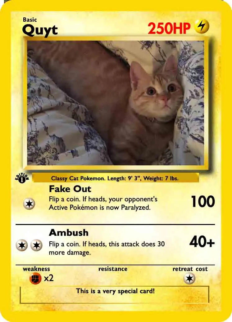 likes: dry kibble, water spritzes, and anything that resembles a string